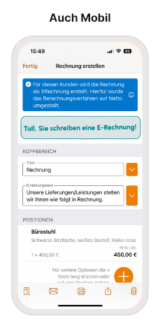 60+ Funktionen wie z.B. Rechnungen schreiben,